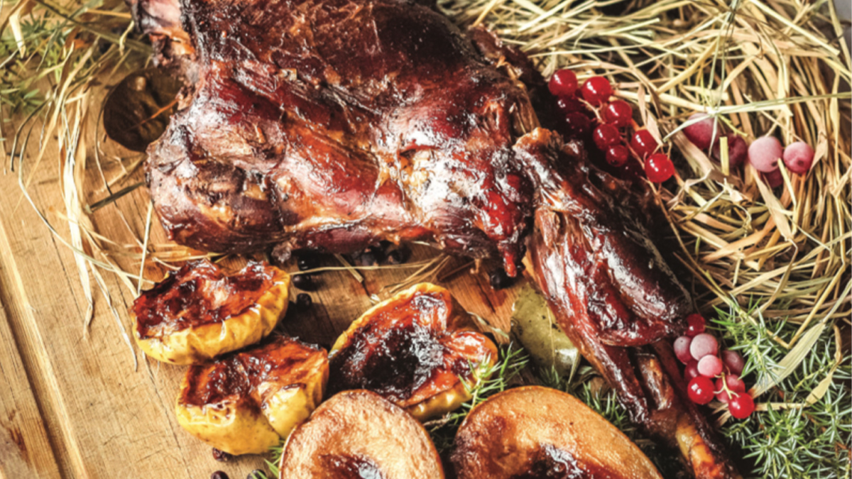 1. Nokāš cepeša buljonu, kas palicis pannā, to pievieno gaļas buljonam. Mērci iebiezina to ar miežu miltiem. Pievieno jāņogu želeju, sāli, piparus, nedaudz portvīna.